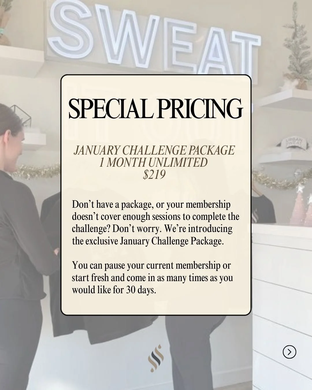 Join us for the January Challenge at our Dallas and Cherry Creek studios and start the new year with momentum. The challenge runs from January 1–31, and all sessions completed during the month count toward your total. Please note that studios are closed on January 1, and punchcards will be available beginning January 2.